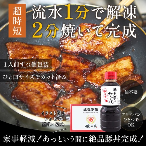 秘伝のたれ漬け豚バラ肉1人前×3/豚大学自家製チャーシュー(450g)×1(豚大学のたれ×1)