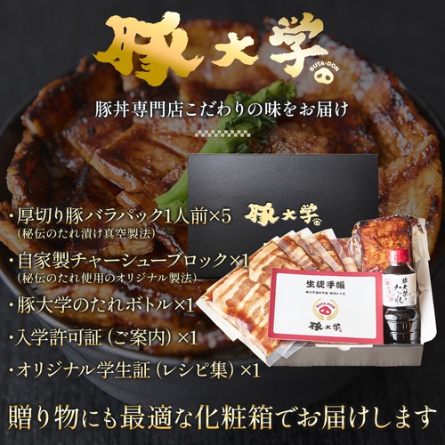 秘伝のたれ漬け豚バラ肉1人前×7/豚大学自家製チャーシュー(450g)×1豚大学のたれ×1